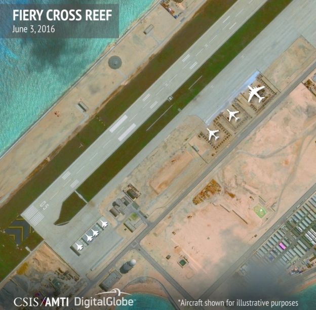 The images, from late July, were released by the Asia Maritime Transparency Initiative and appear to confirm that Chinese military fighter jets could, at some point, be based on Fiery Cross, Subi and Mischief Reefs.