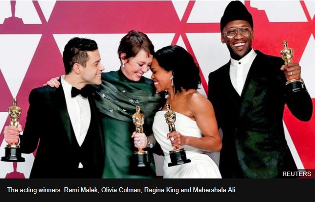 British actress Olivia Colman defied the odds to scoop an Oscar on a night when Green Book also sprung a surprise by winning the award for best film.