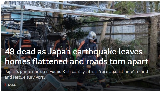 - Japanese PM Fumio Kishida has ordered army personnel to help with the relief effort, which is being hampered by extensive damage to roads