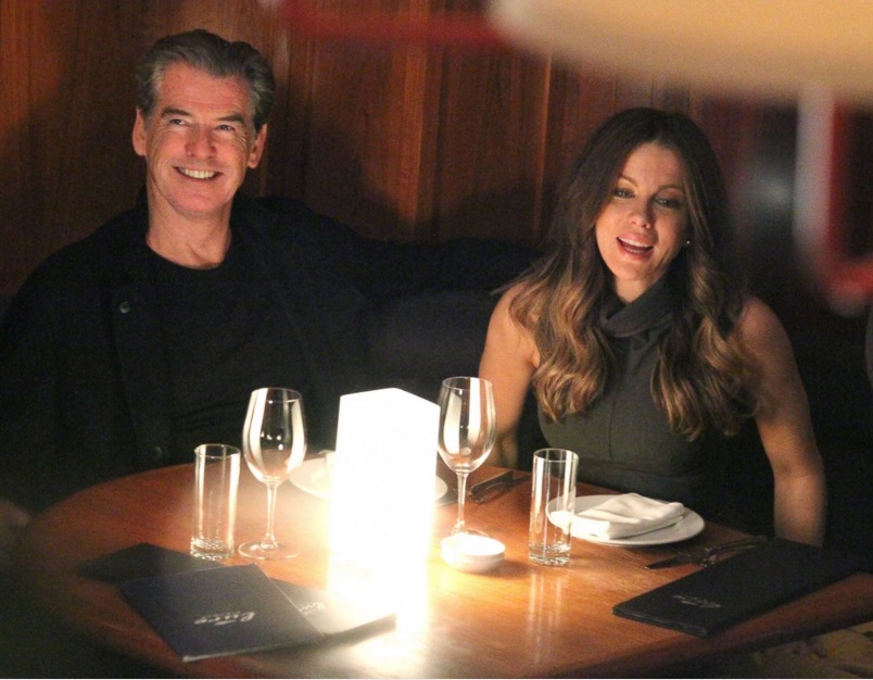 Pierce Brosnan and Kate Beckinsale have dinner at Lure restaurant while filming scenes for their latest film "The Only Living Boy In New York" in downtown Manhattan, on Nov. 16, 2016.