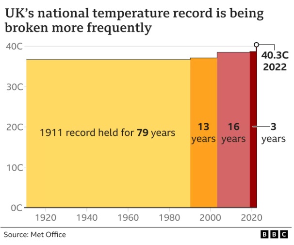 Temperature records broken at more than half of the UK's weather stations in 2022