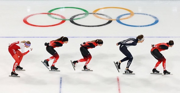 Speed skaters train ahead of the Milano Cortina 2026 Winter Olympic Games at the Milano Ice Skating Arena in Milan, Italy, February 4, 2026.